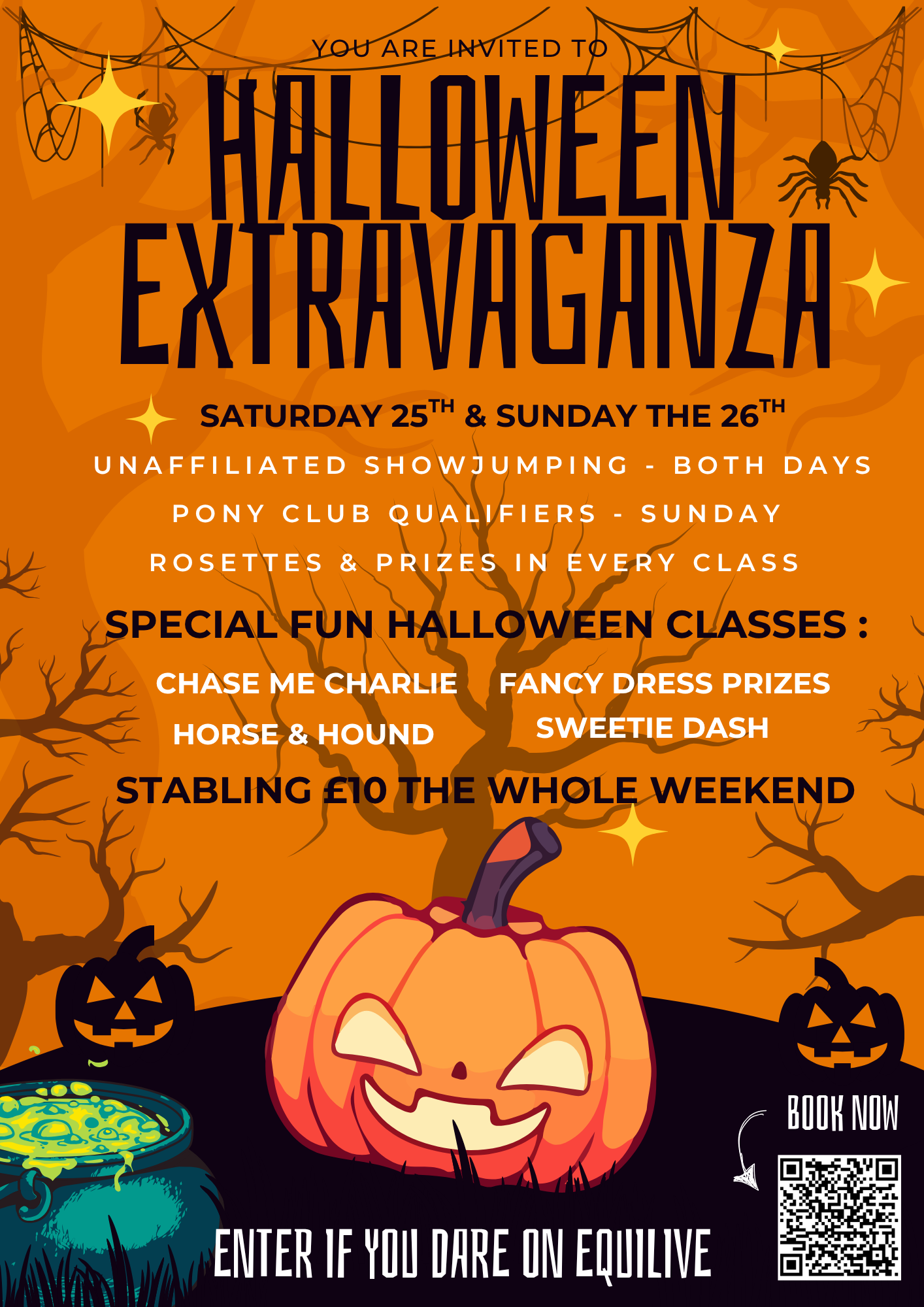 We’re going even bigger this year… instead of just our Halloween Show on Saturday 26th October, we’ve decided to make it a FULL WEEKEND EXTRAVAGANZA! 🐴✨ 📅 Saturday 25th & Sunday 26th October 📍 The Daimler Foundation at Morris Equestrian Centre Here’s what’s happening: 🐴 Unaffiliated Showjumping – BOTH DAYS 🏆 Rosettes & LOTS of…